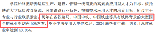 也恰是由于有这个“大腿”正在,才能使得铁道大学四方学院正在一众平易近办本科高校中显得“异乎寻常”。中国铁建、中国中铁等具有铁布景的大型国企的就业率均正在50%摆布!